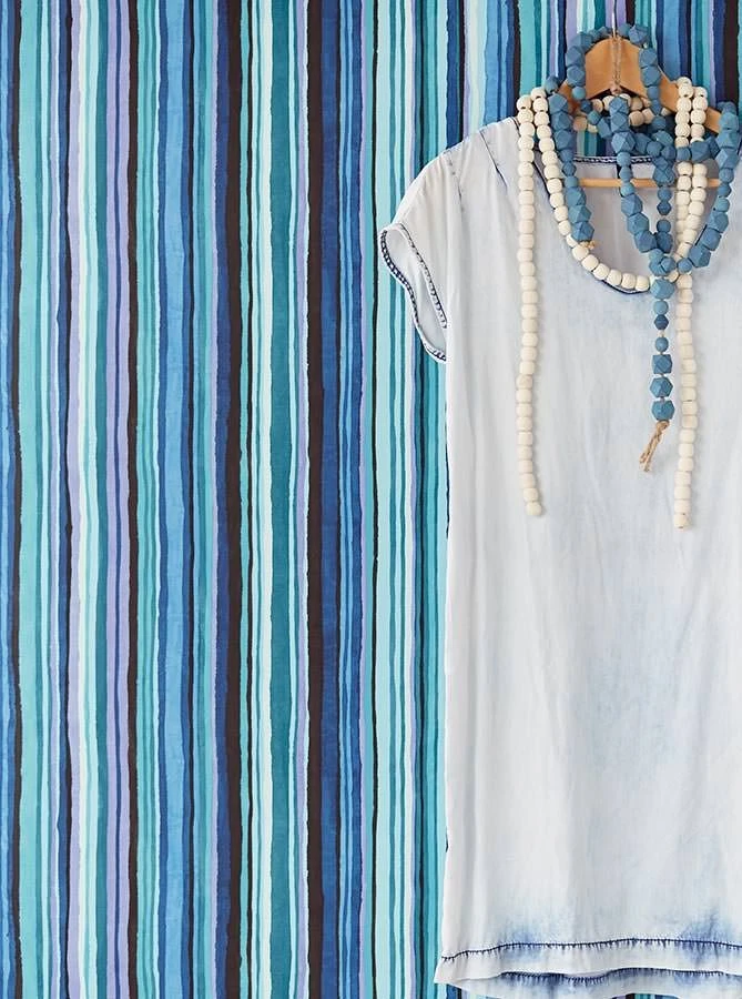 Expressionismus und Naive Kunst geben sich auf Streifentapete Zeno mit ausdrucksstarken kühlen Farben die Hand. Das Ergebnis ist eine aquarellinspirierte Designkomposition mit Tiefgang, die eine völlig neue Raumwelt erschafft. Tauchen Sie ein in die Explosivität, welche die locker und unregelmäßig gezeichneten Streifen in Pastellviolett, Schwarz, Türkisblau, Wasserblau an der Wand entfaltet. Die exklusive Vliestapete bildet die ideale Kulisse für Solokünstler in Unifarben, z.B. ein weisses Sofa oder eine große weiße Skulptur, die sie kunstvoll in Szene setzt.