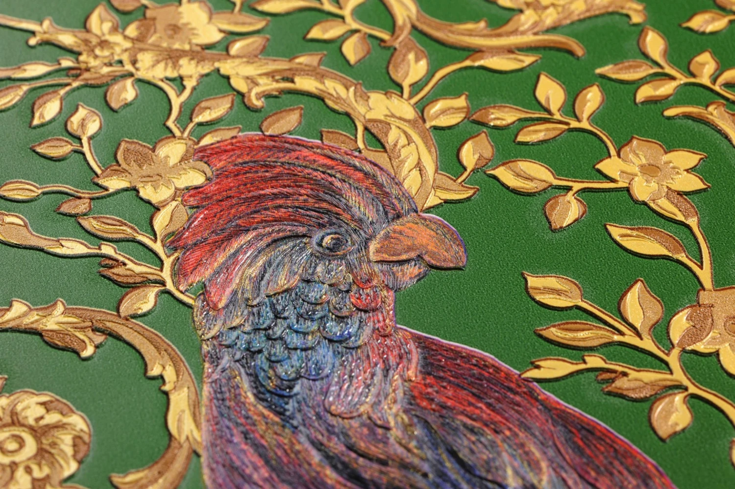 Versace entwirft mit diesem entzückenden Tapetendesign eine neobarocke Offenbarung an die Vogelwelt. Braun und Hellgelb verleihen den Ranken-Ornamenten zarten Goldschimmer, der die violetten Paradiesvögel einfängt. Der grüne Fond setzt einen markanten Kontrast. Die edle Designertapete mit fühlbarem Relief besitzt eine strapazierfähige und scheuerbeständige Vinyloberfläche.
